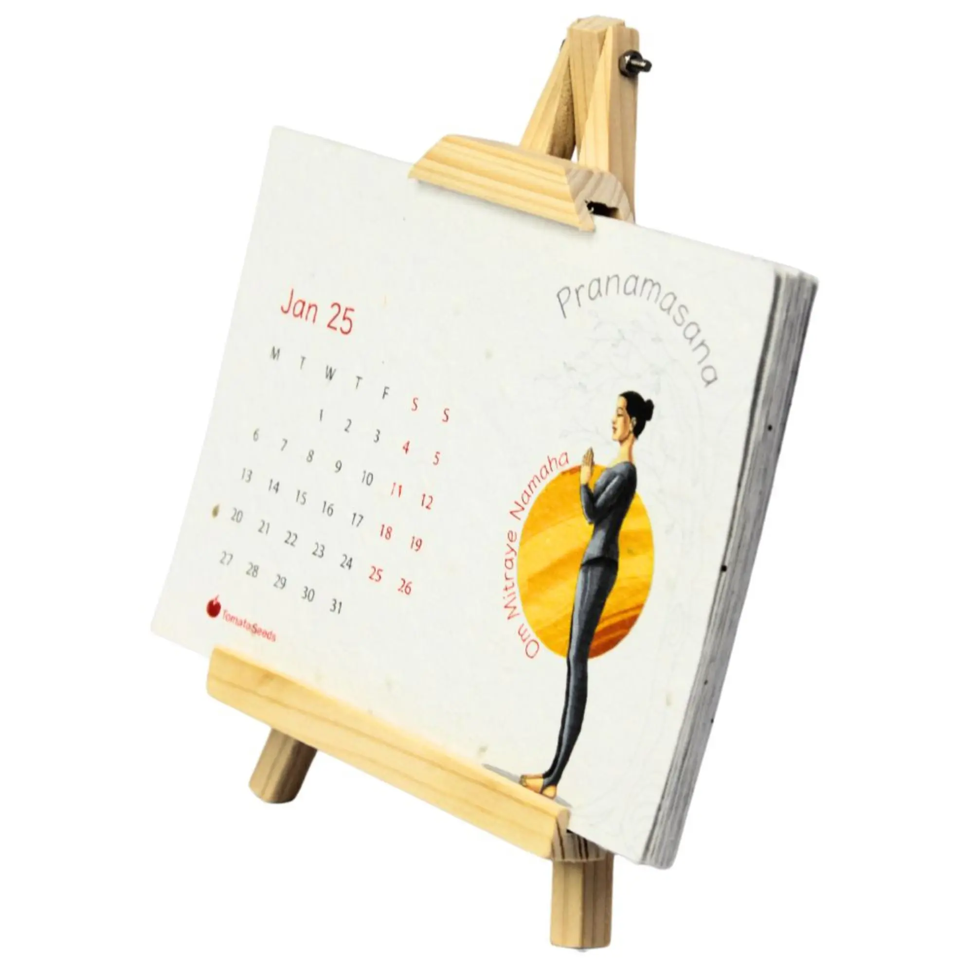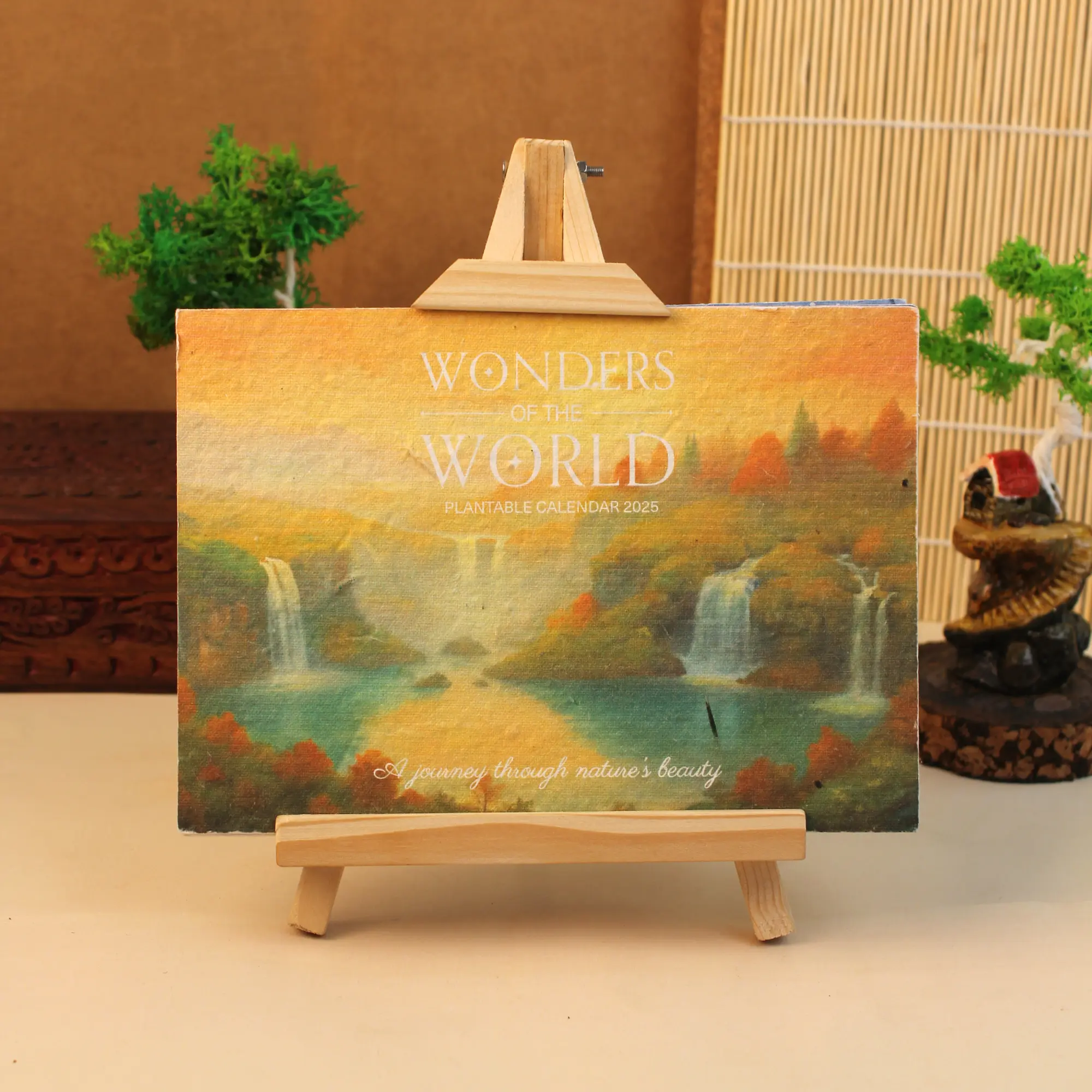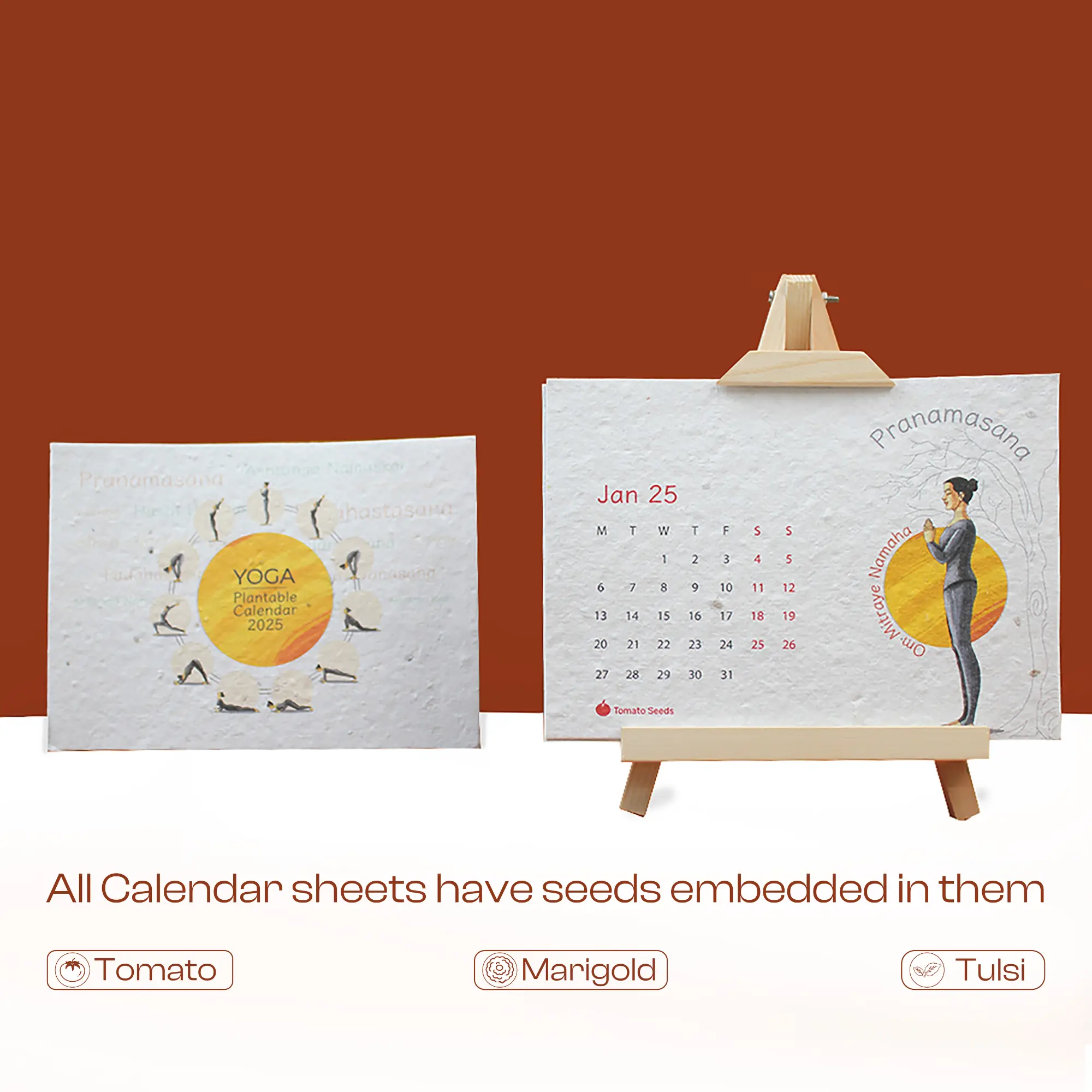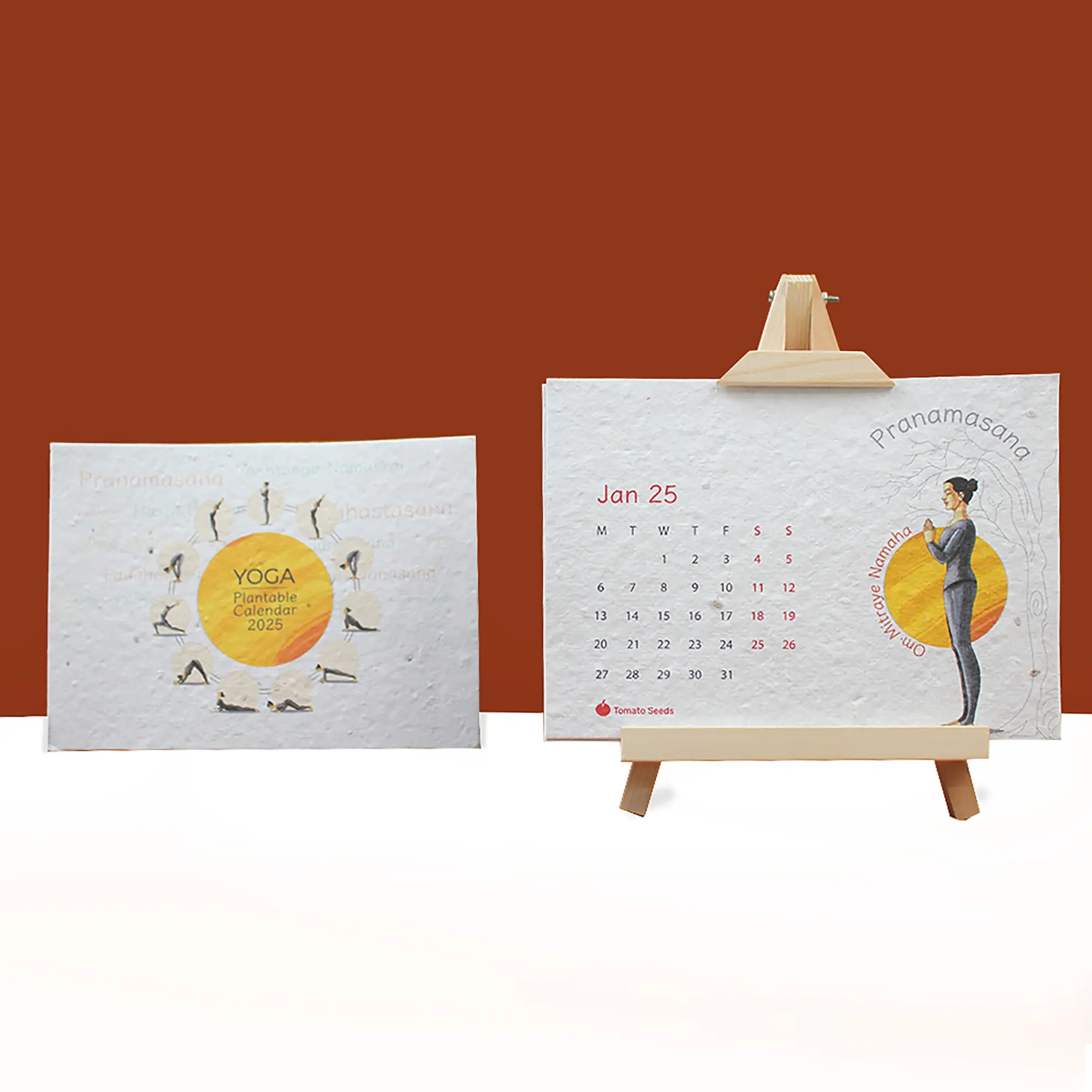 12 seed‑paper cards (7″×5″); 9″ wooden A‑stand; tomato, basil & marigold seeds. Planting Instructions included. A larger eco‑calendar: showcase months in style, then plant the cards to grow your own year‑round garden.