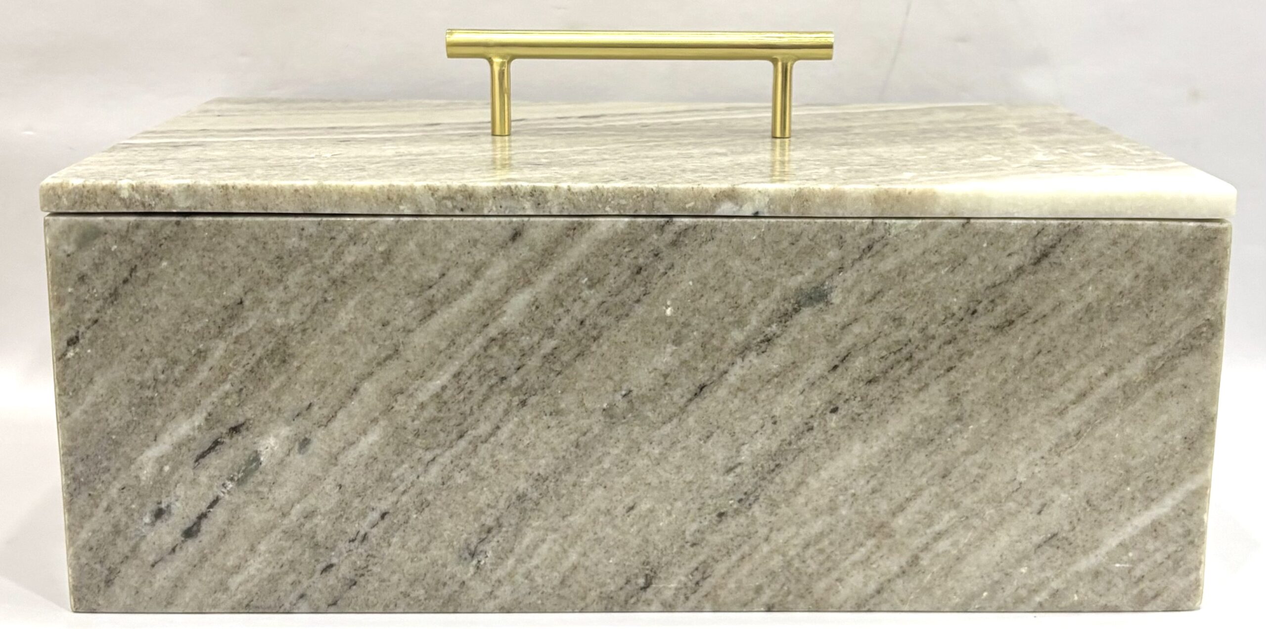 Brown Marble Jointed Box with Gold Plated Stainless Steel Handle