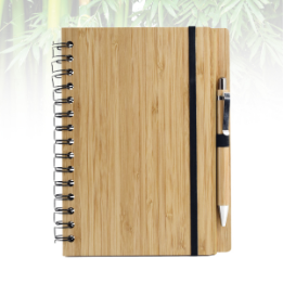 A notebook with a natural bamboo cover and recycled pages, which can be personalized with printing or engraving. Durable and reusable, it’s a practical and sustainable choice for giveaways.