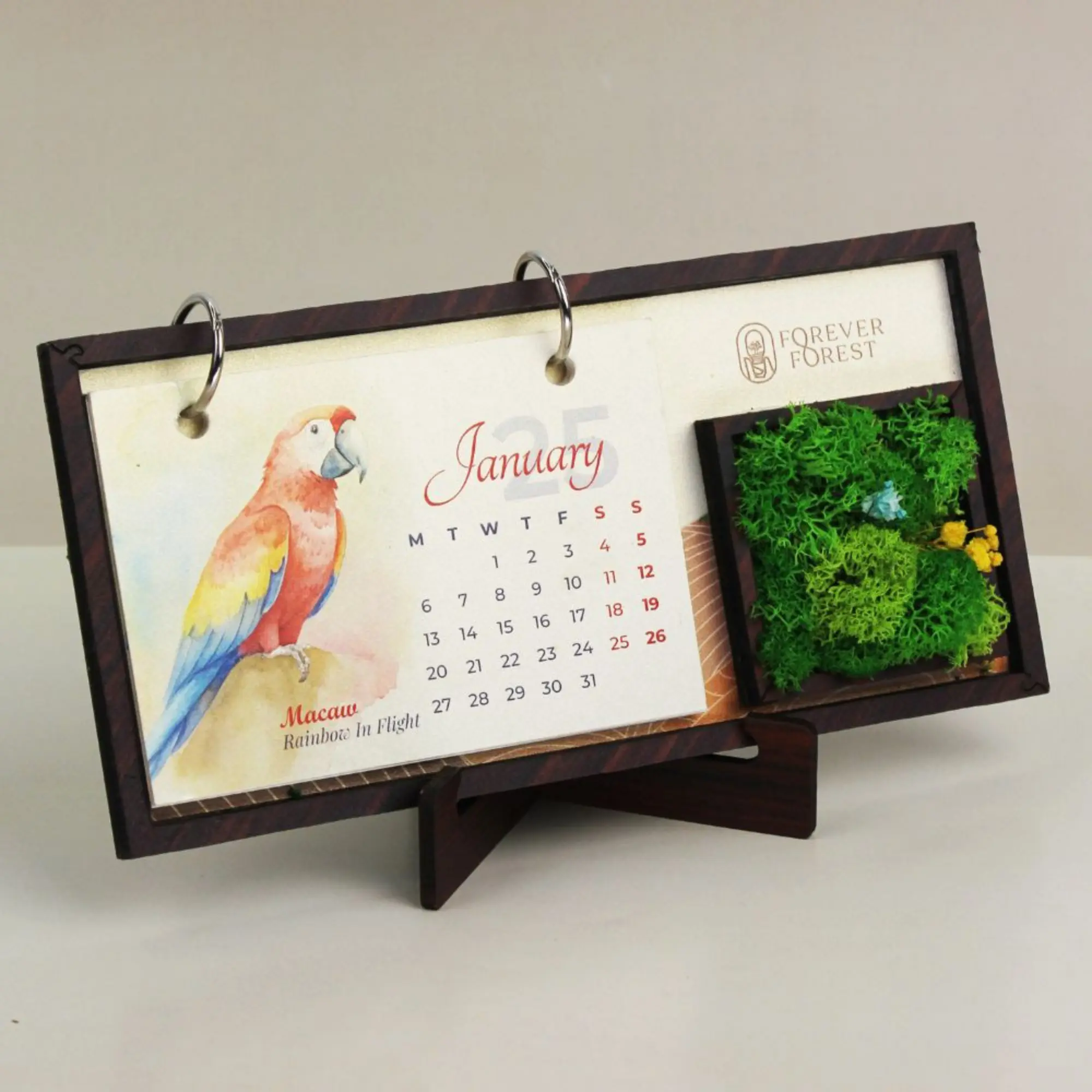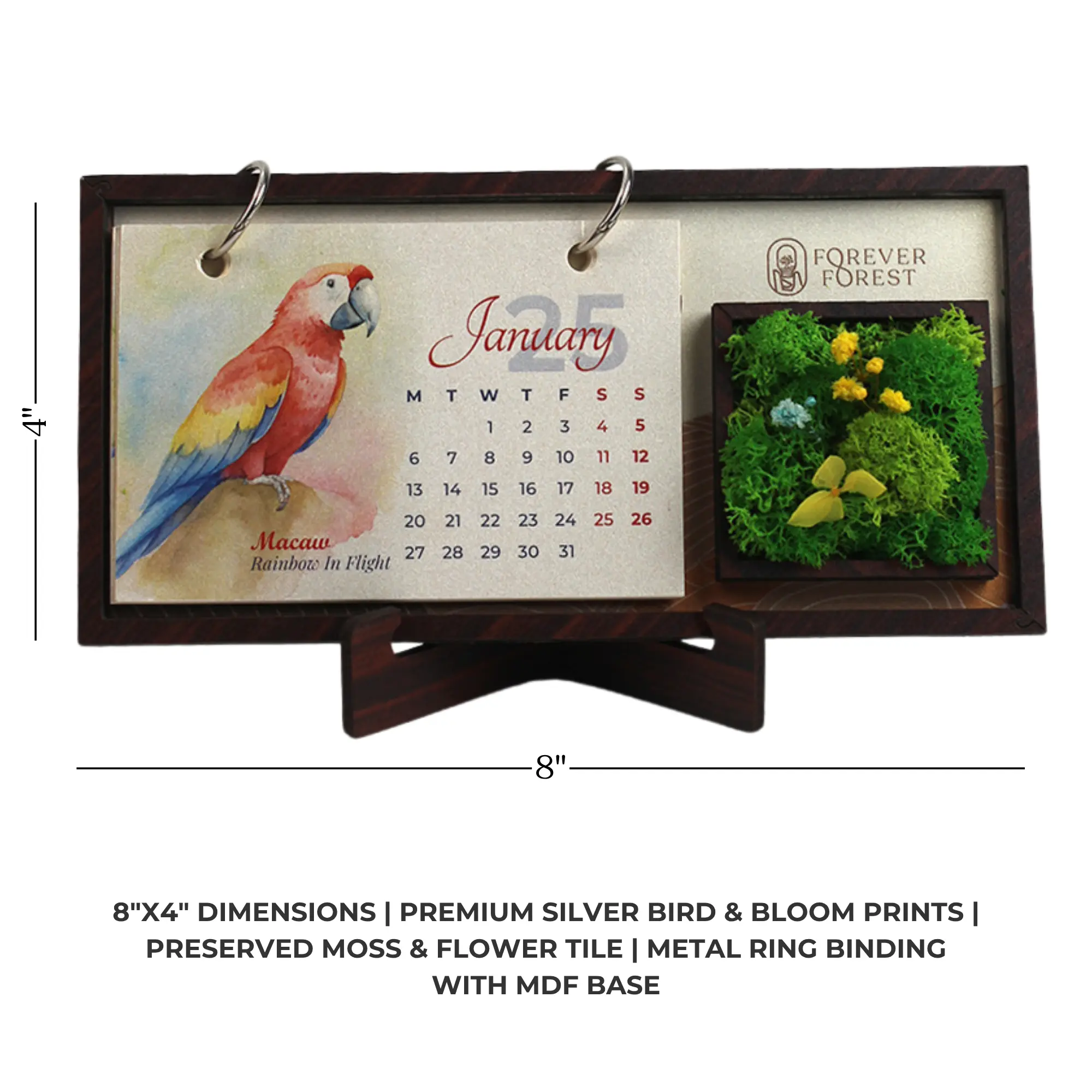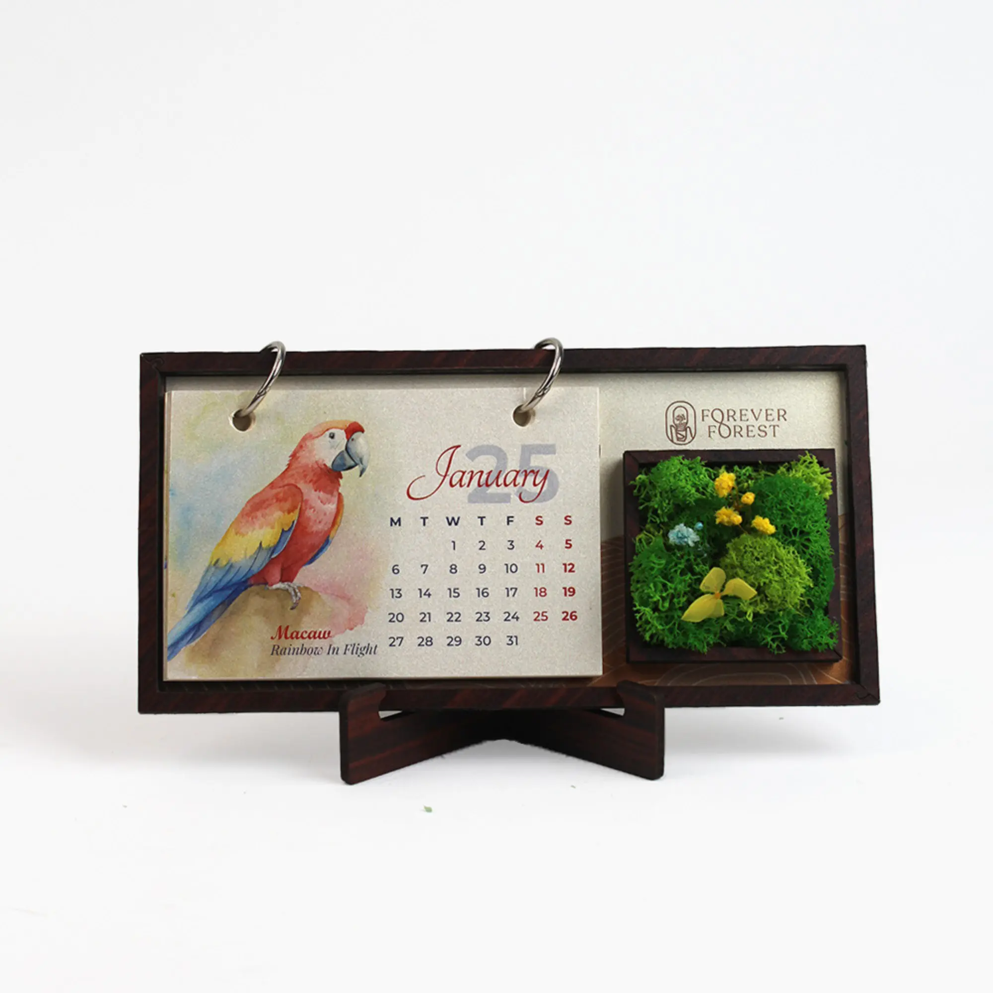 12 art‑print sheets (8″×4″); metal ring bound; preserved moss tile on 8″×4″ MDF base Blend premium art prints and preserved moss for a luxury desk accent that celebrates nature’s beauty.