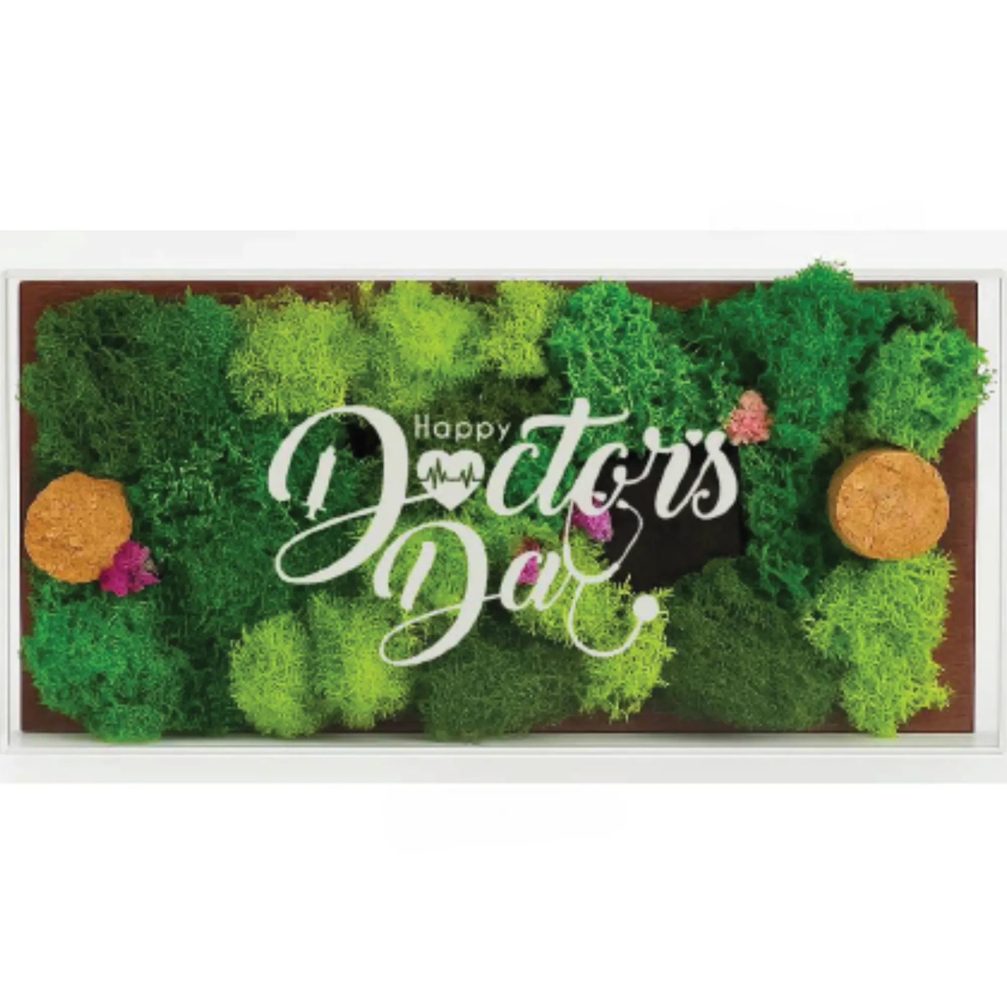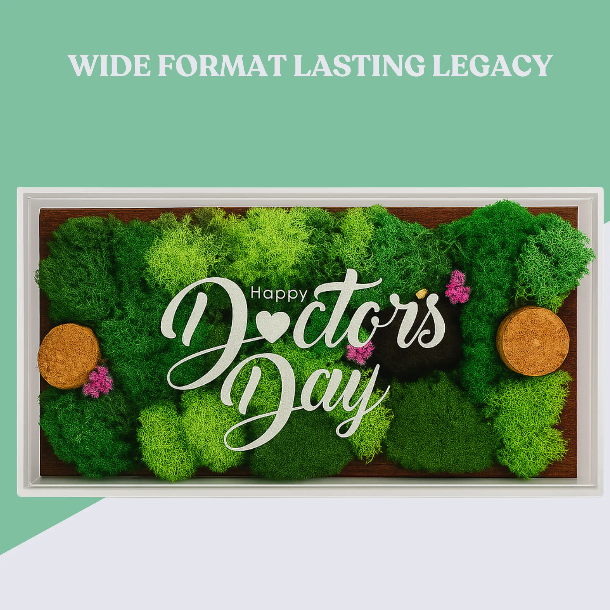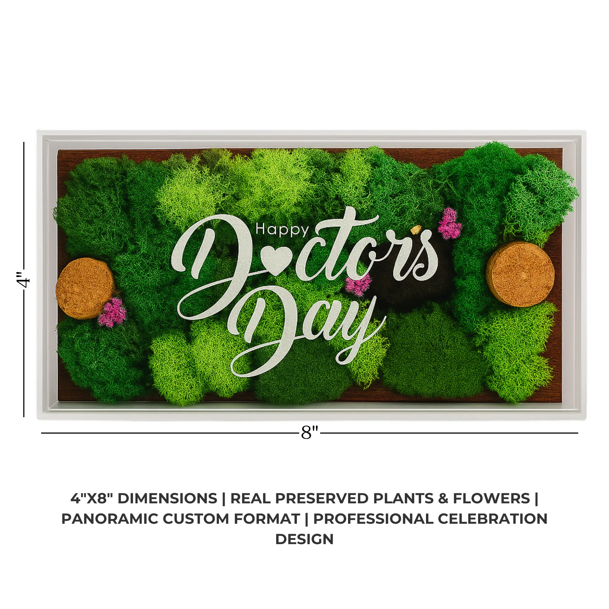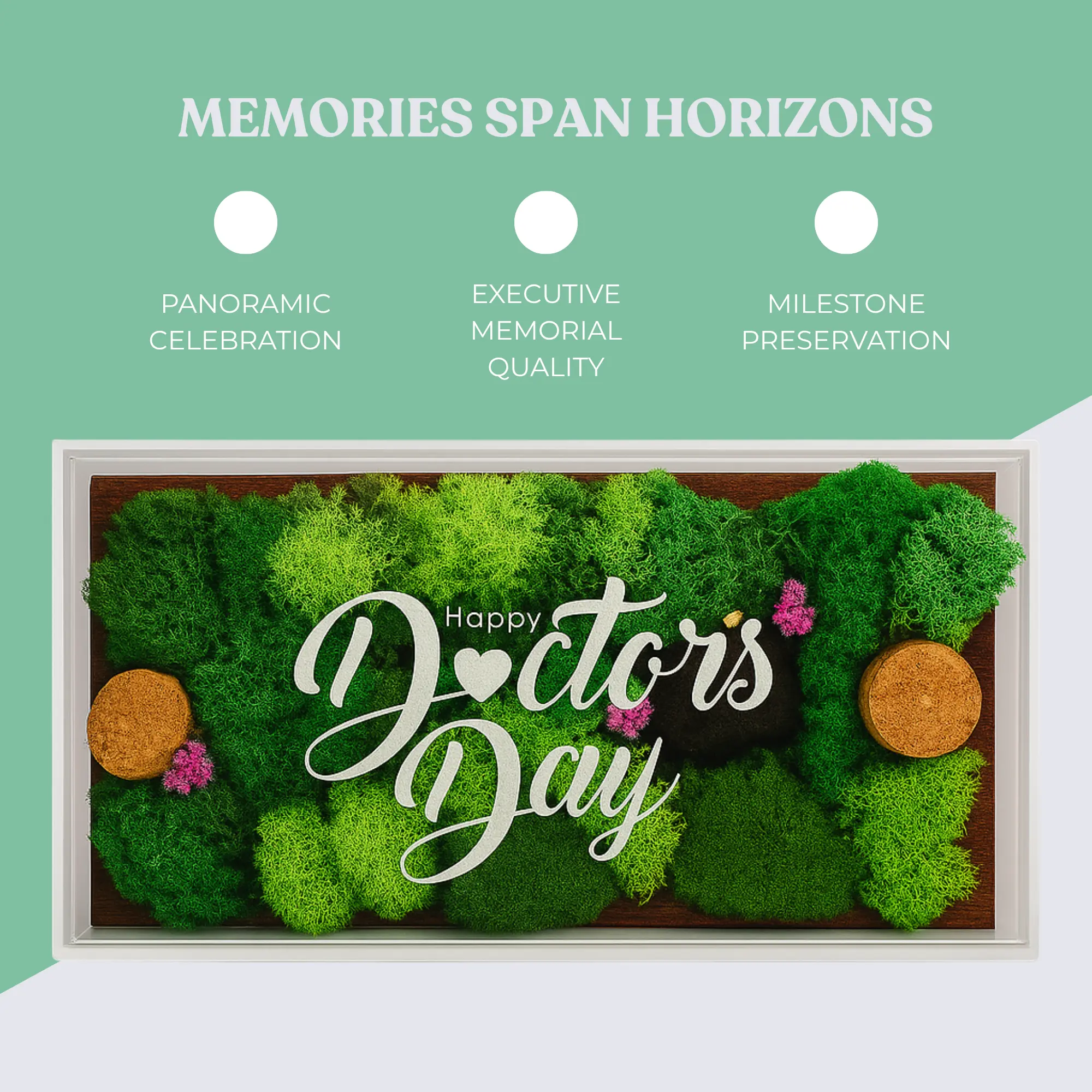 4″x 8″ preserved moss display, acrylic cover, custom printing, panoramic format, zero maintenance. Premium memorial display for significant recognition requiring wide format preserved forest with custom messaging.