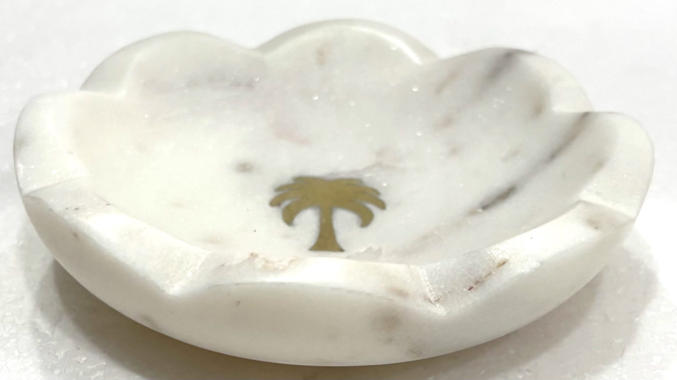 White Marble Scallop Trinket Dish with Tree Brass Inlay